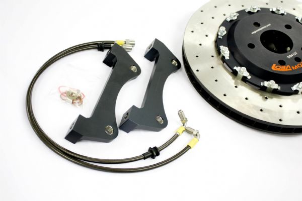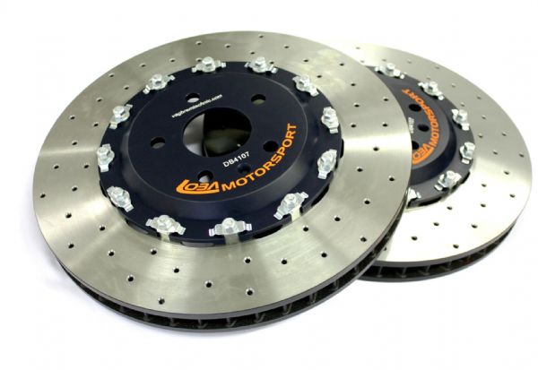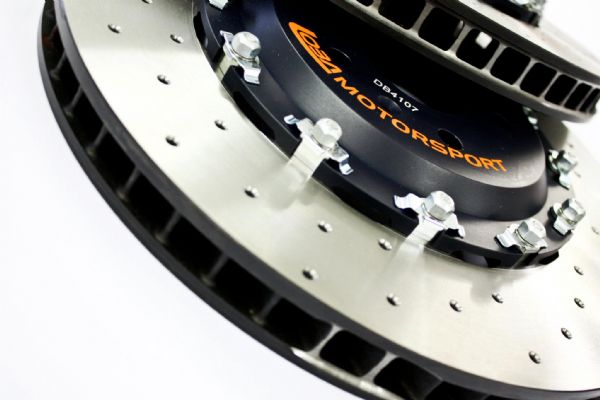 Uses stock callipers, the assembly uses “ Float in the Bell” Technology, float is limited to 0.2mm compared to 0.5-0.7mm float disc systems such as Alcon or less capable AP racing setups. Custom rate developed bobbin springs allow design axial and radial float whilst maintaining OEM levels of NVH.