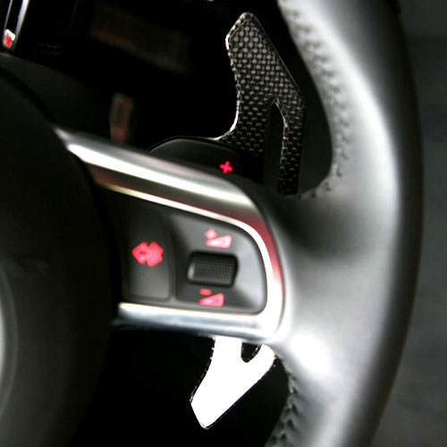 This Is Design carbon fibre paddles shifters, easy to install with 3M tape and instructions provided. Retains all steering wheel functions.