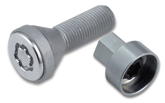 McGard bolts are manufactured in two parts. The advantage is that the head exhibits a considerably greater hardness than possible with single-part manufacture. This extreme hardness makes it impossible to open antitheft wheel locks with standard tools. The head’s nickel/chrome coating assures corrosion resistance and therefore an aesthetic visual appeal over many years.